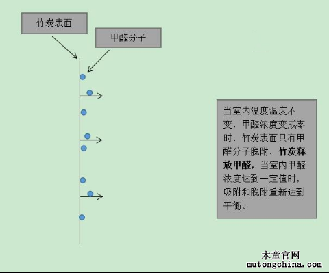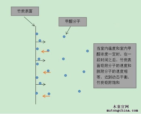 當環(huán)境中甲醛的濃度降低時,竹炭表面的吸附和脫附平衡就會被打破,吸附速度減小,飽和的竹炭就會釋放甲醛。